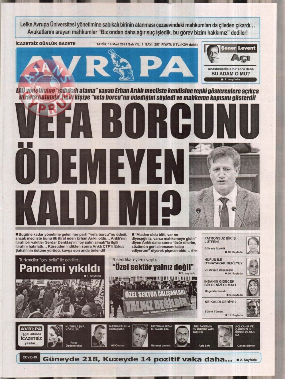 KKTC'de Gazeteler Bugün Ne Manşet Attı? (16 Mart 2021)