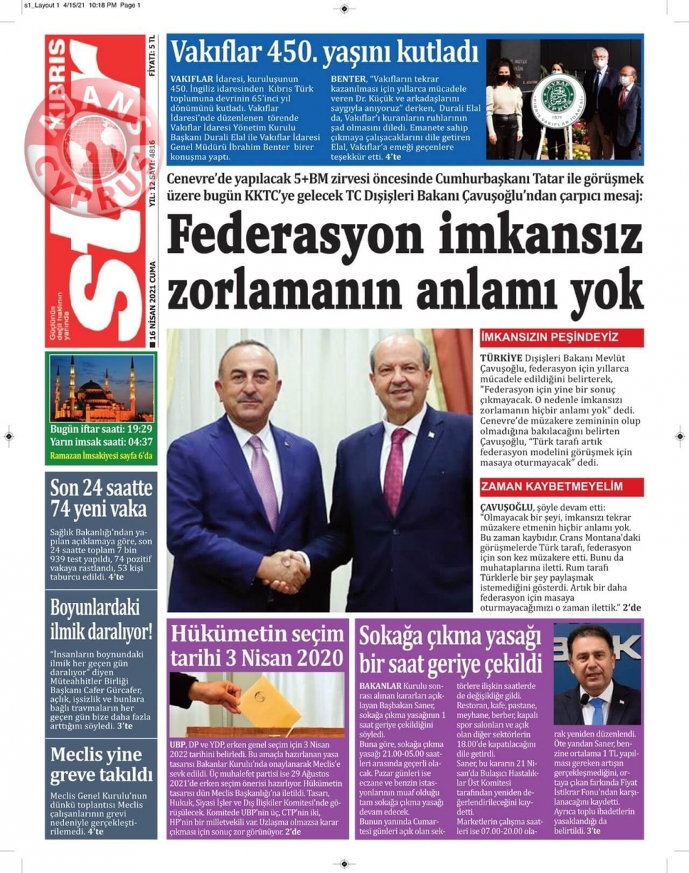 KKTC'de Gazeteler Bugün Ne Manşet Attı? (16 Nisan 2021)