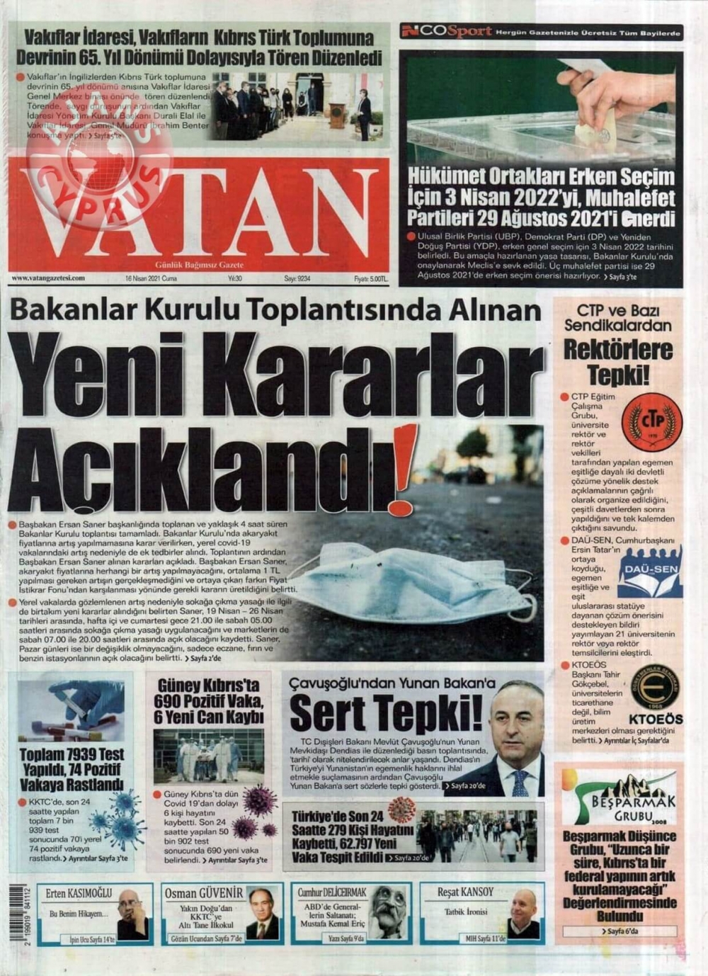 KKTC'de Gazeteler Bugün Ne Manşet Attı? (16 Nisan 2021)
