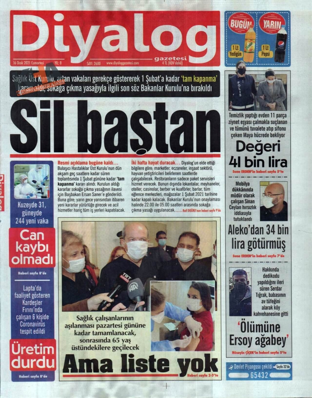 KKTC'de Gazeteler Bugün Ne Manşet Attı? (16 Ocak 2021)