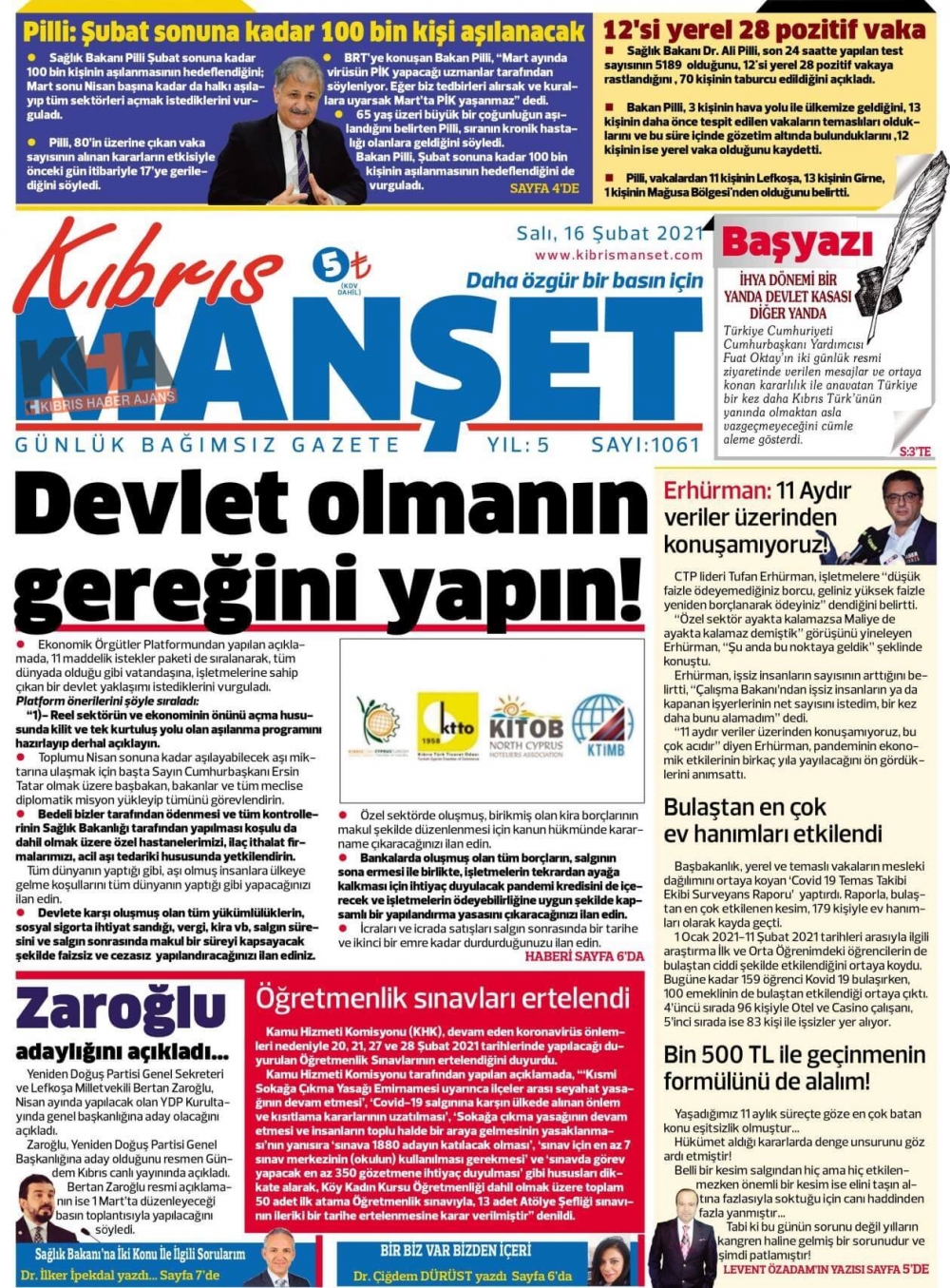 KKTC'de Gazeteler Bugün Ne Manşet Attı? (16 Şubat 2021)