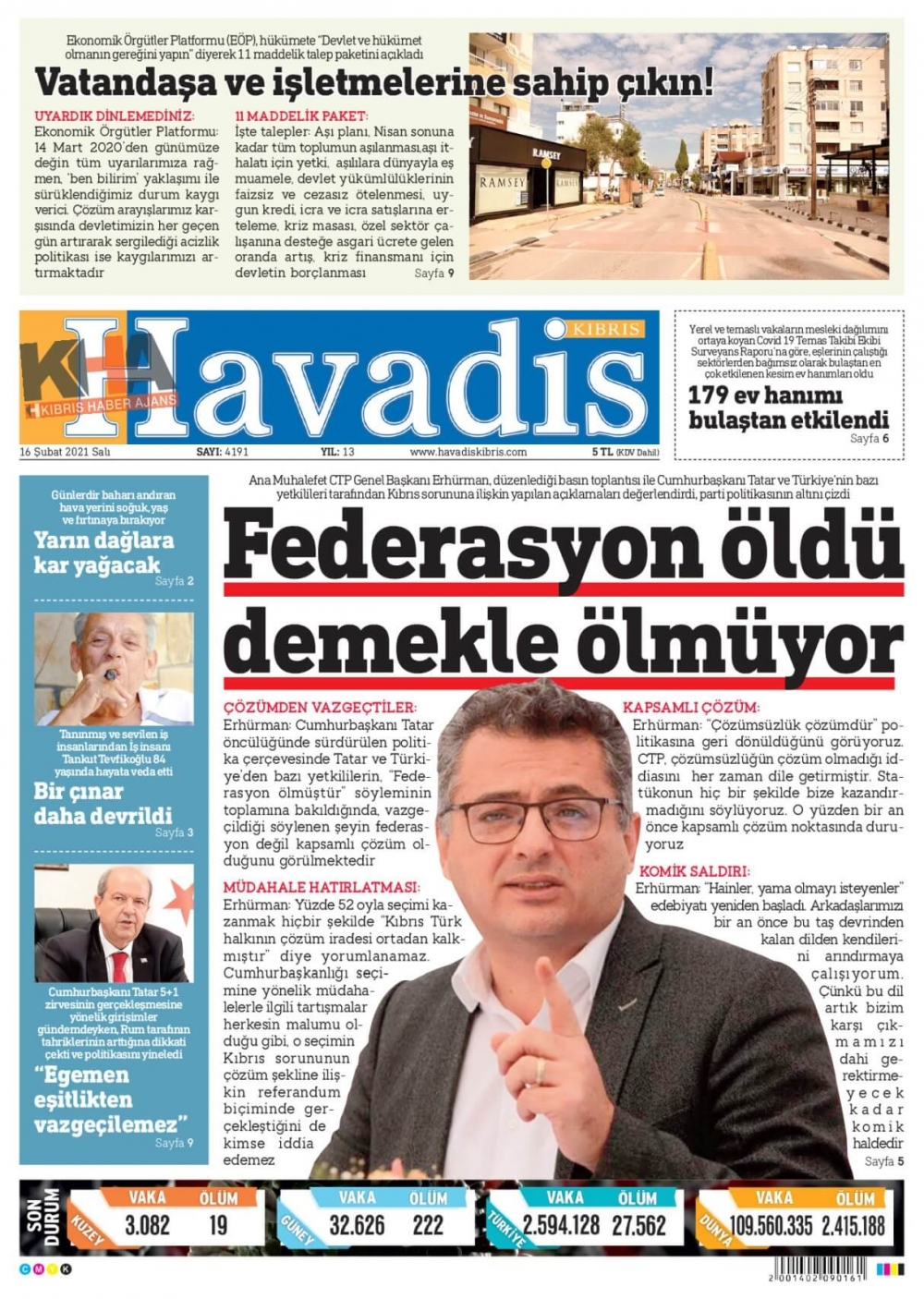KKTC'de Gazeteler Bugün Ne Manşet Attı? (16 Şubat 2021)