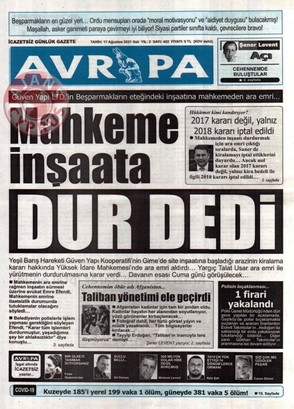 KKTC'de Gazeteler Bugün Ne Manşet Attı? (17 Ağustos 2021)