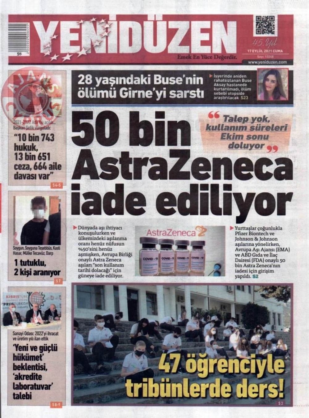 KKTC'de Gazeteler Bugün Ne Manşet Attı? (17 Eylül 2021)