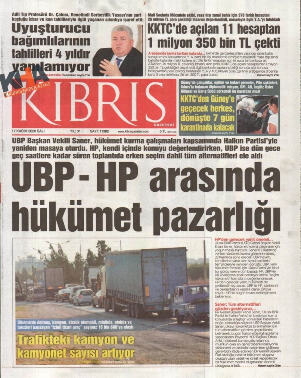 KKTC'de Gazeteler Bugün Ne Manşet Attı? (17 Kasım 2020 Salı)