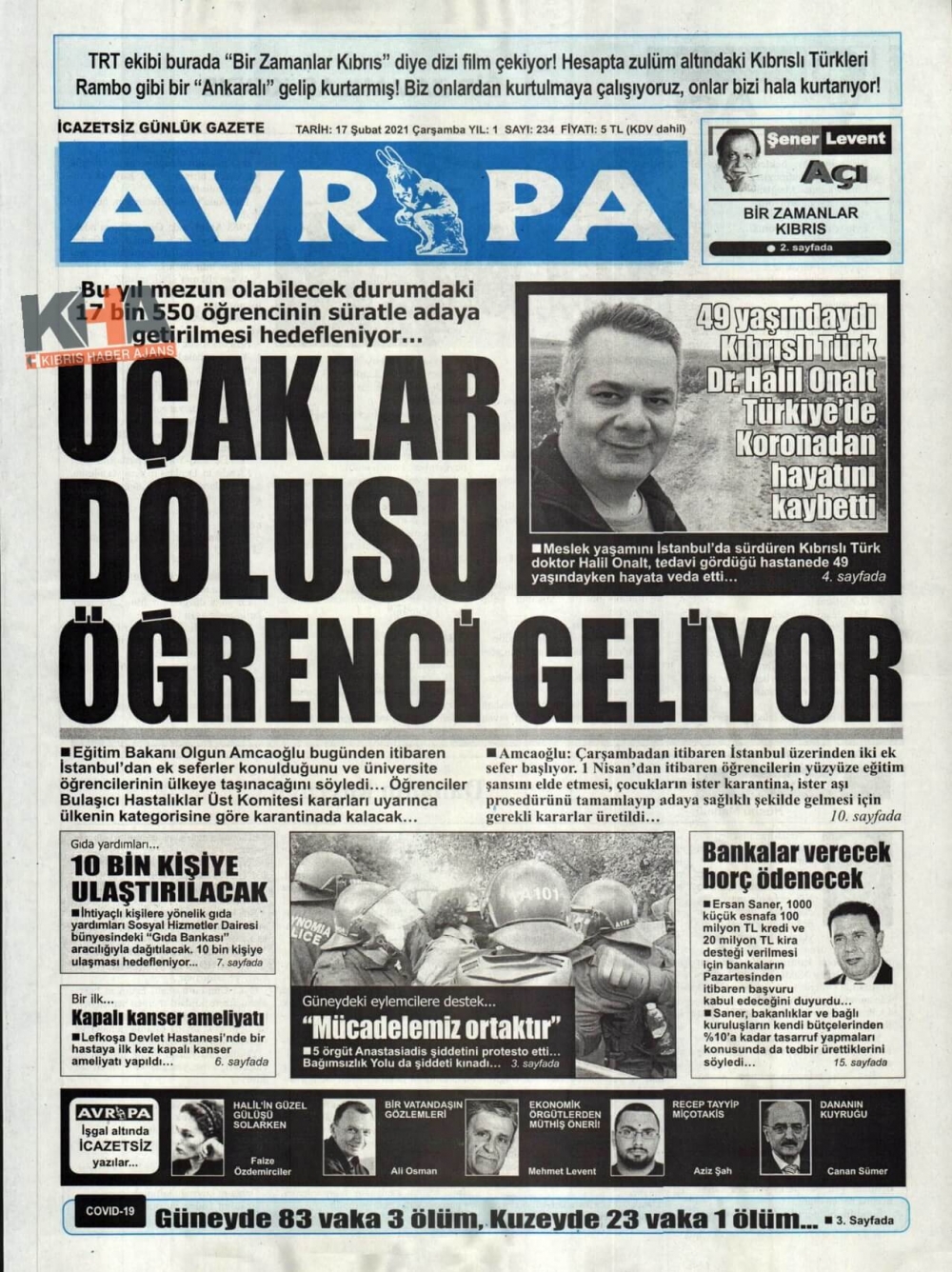 KKTC'de Gazeteler Bugün Ne Manşet Attı? (17 Şubat 2021)