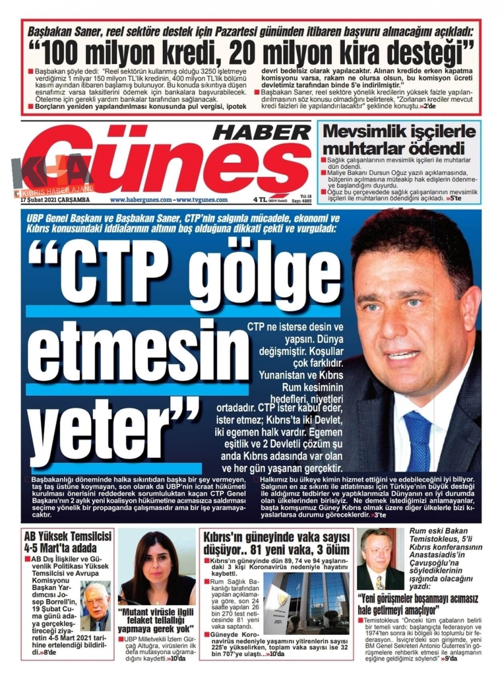 KKTC'de Gazeteler Bugün Ne Manşet Attı? (17 Şubat 2021)