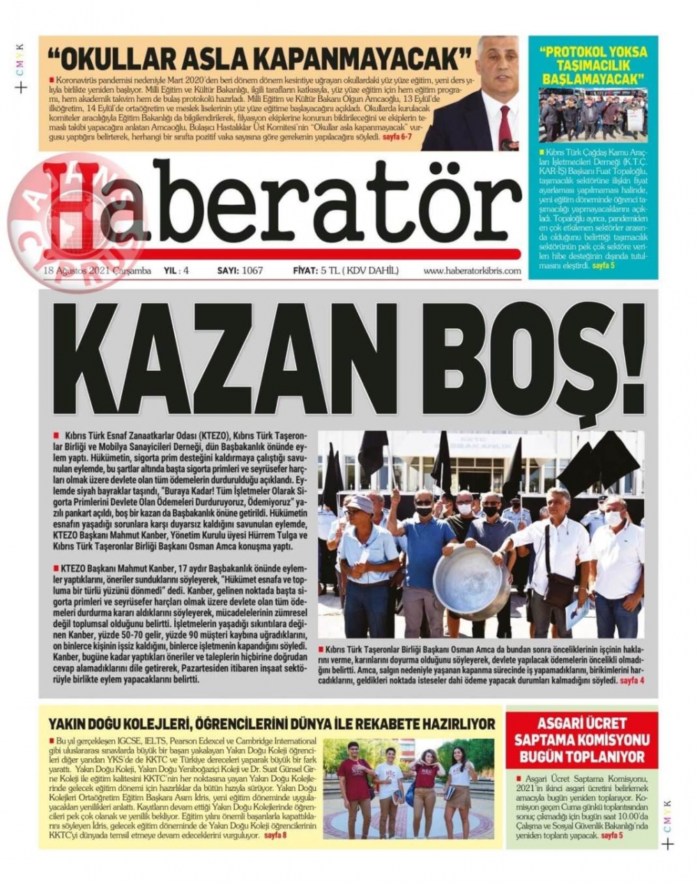 KKTC'de Gazeteler Bugün Ne Manşet Attı? (18 Ağustos 2021)