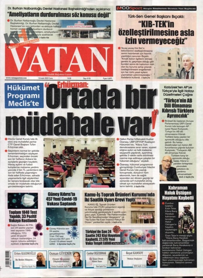 KKTC'de Gazeteler Bugün Ne Manşet Attı? (18 Aralık 2020 Cuma)