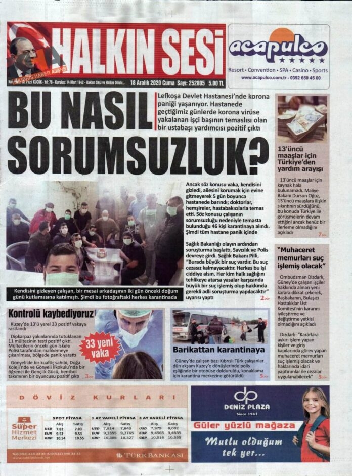 KKTC'de Gazeteler Bugün Ne Manşet Attı? (18 Aralık 2020 Cuma)