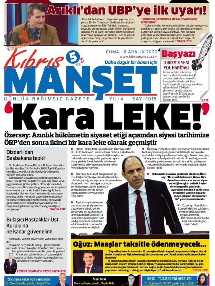KKTC'de Gazeteler Bugün Ne Manşet Attı? (18 Aralık 2020 Cuma)