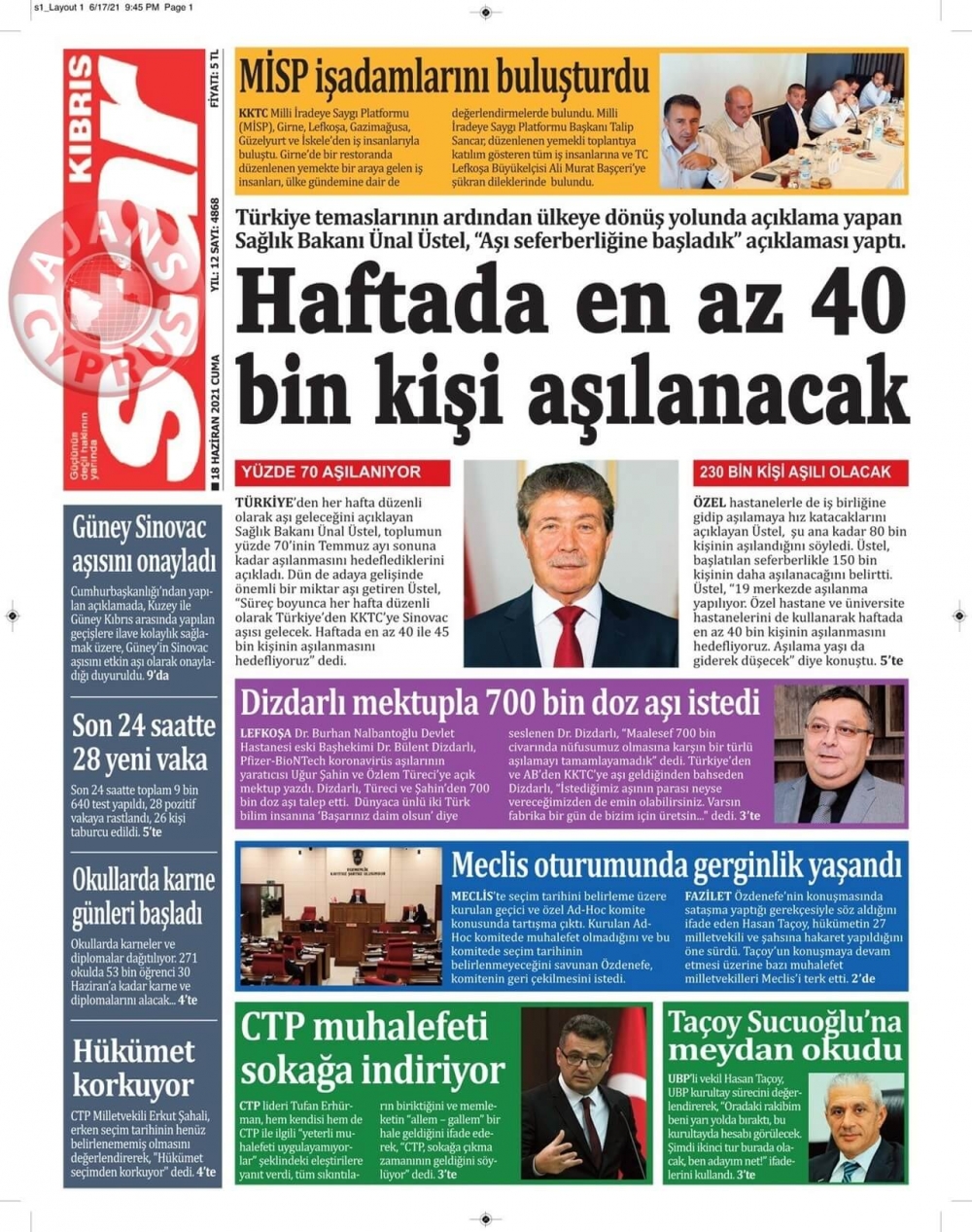 KKTC'de Gazeteler Bugün Ne Manşet Attı? (18 Haziran 2021)