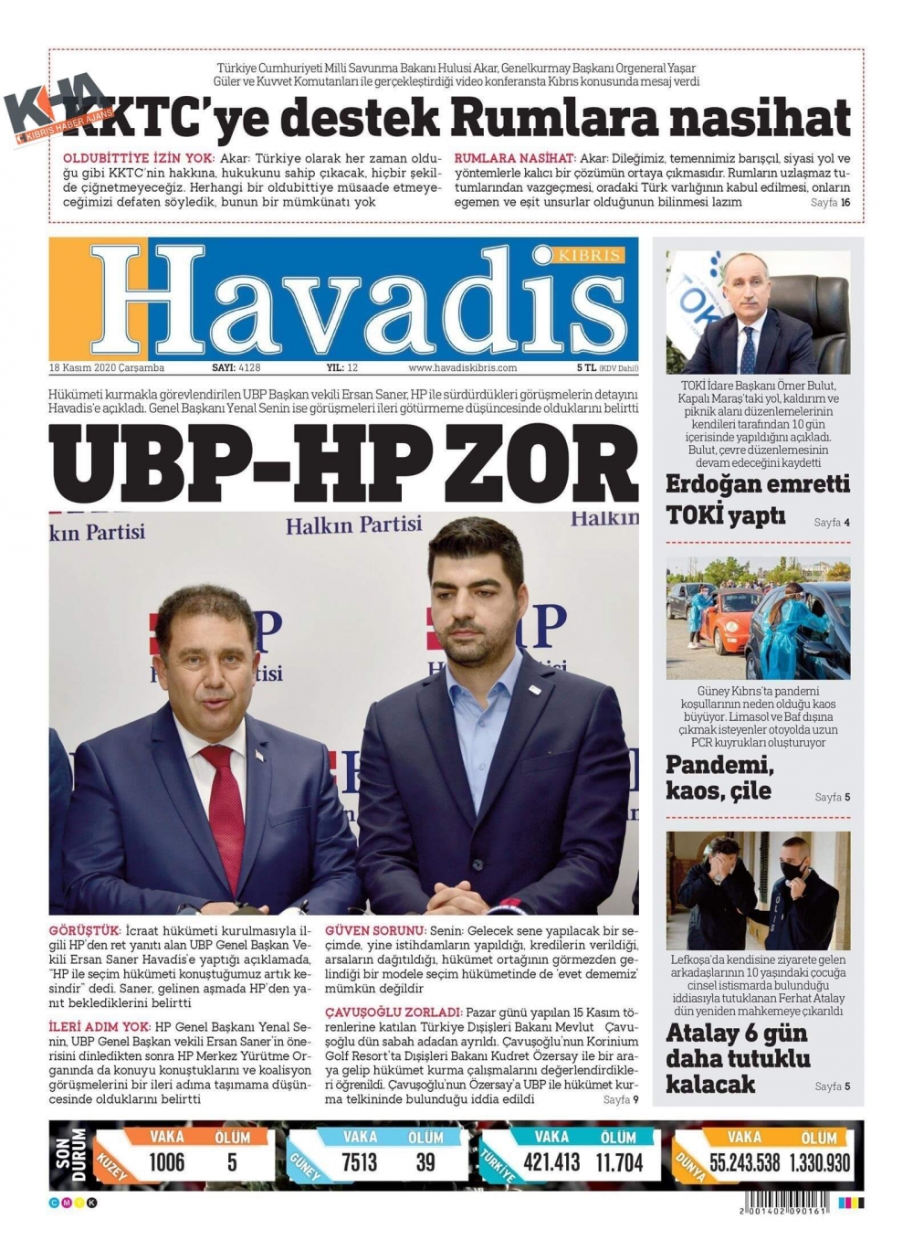 KKTC'de Gazeteler Bugün Ne Manşet Attı? (18 Kasım 2020 Çarşamba)