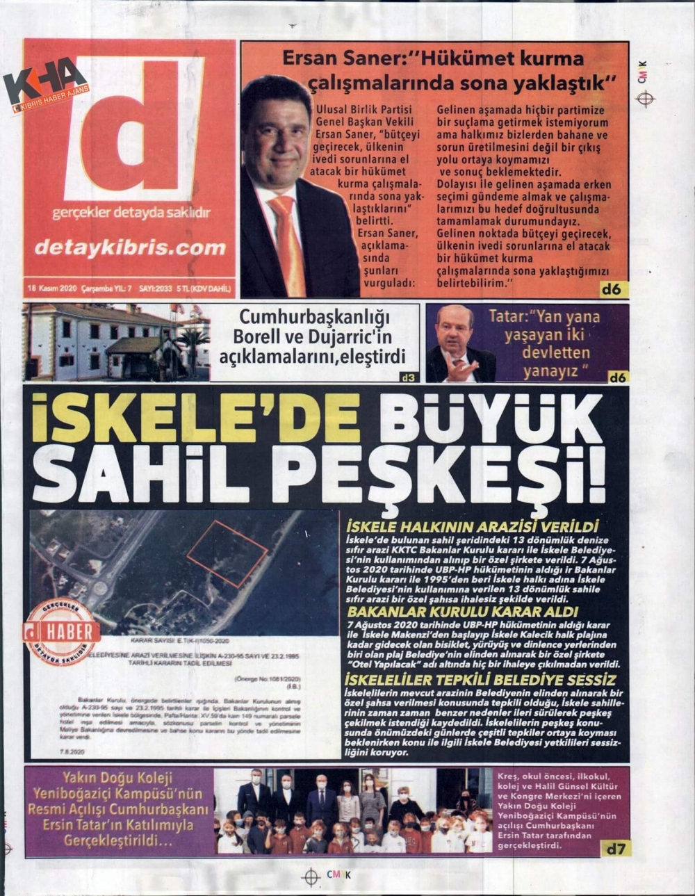 KKTC'de Gazeteler Bugün Ne Manşet Attı? (18 Kasım 2020 Çarşamba)
