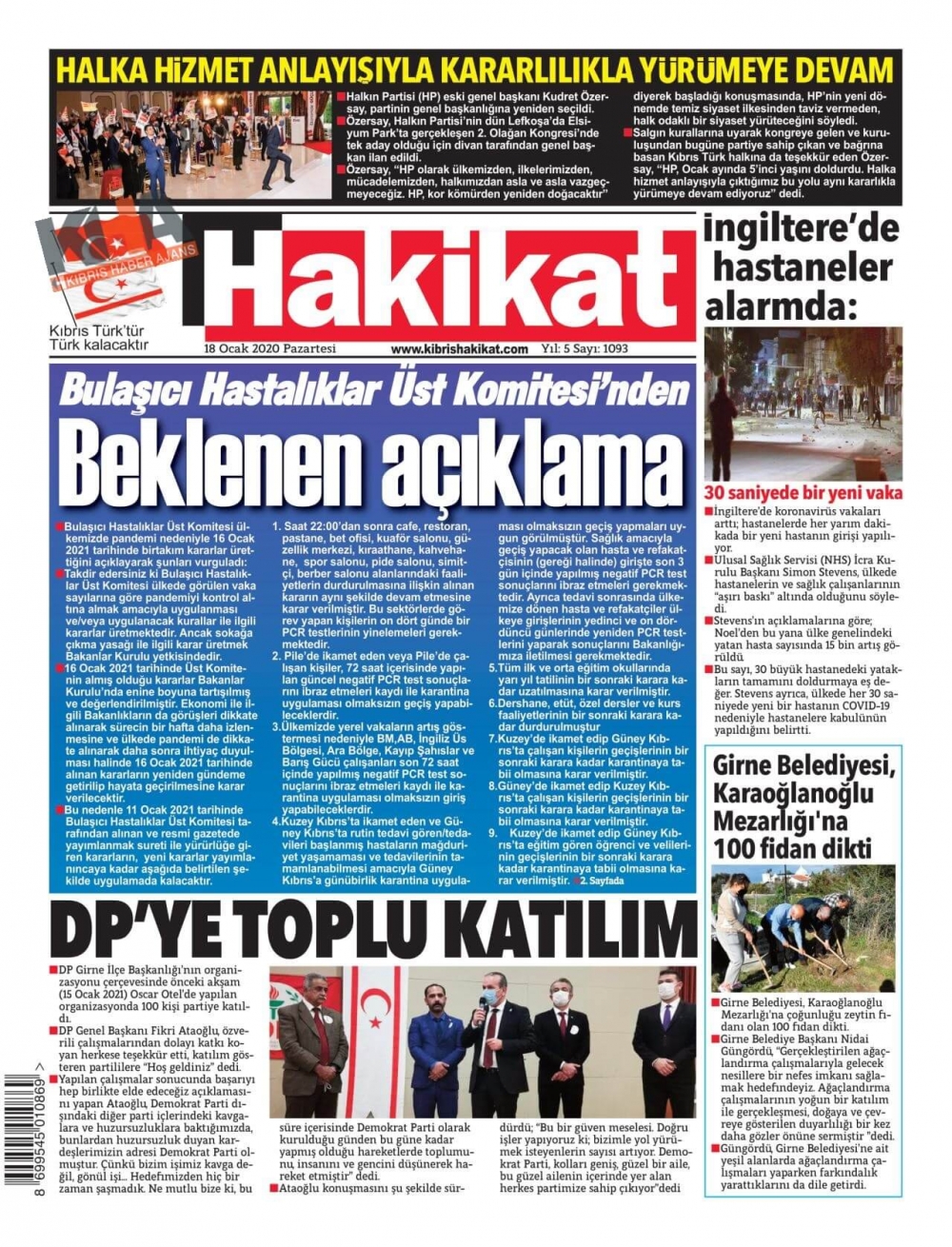 KKTC'de Gazeteler Bugün Ne Manşet Attı? (18 Ocak 2021)