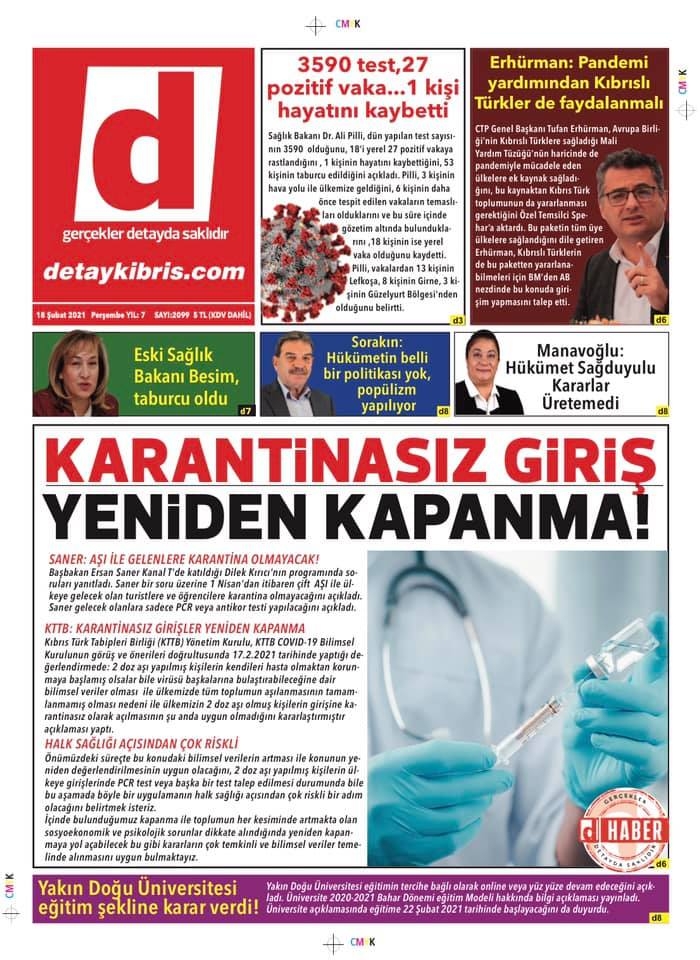 KKTC'de Gazeteler Bugün Ne Manşet Attı? (18 Şubat 2021) galerisi resim 1