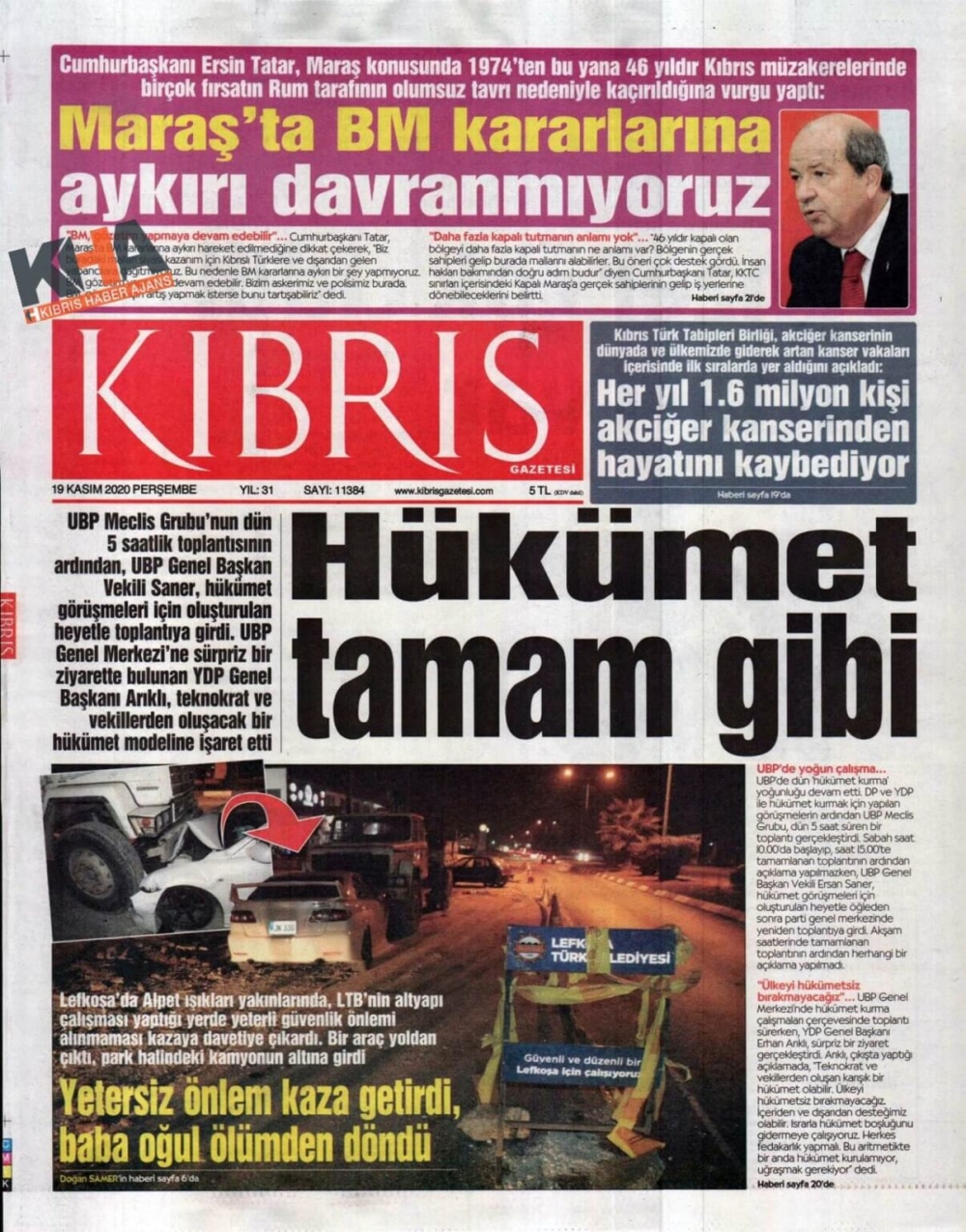 KKTC'de gazeteler bugün ne manşet attı? 19 Kasım 2020 Peşembe
