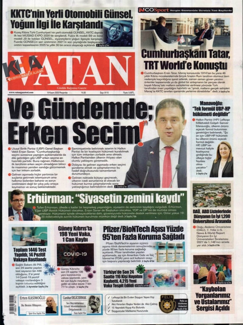 KKTC'de gazeteler bugün ne manşet attı? 19 Kasım 2020 Peşembe
