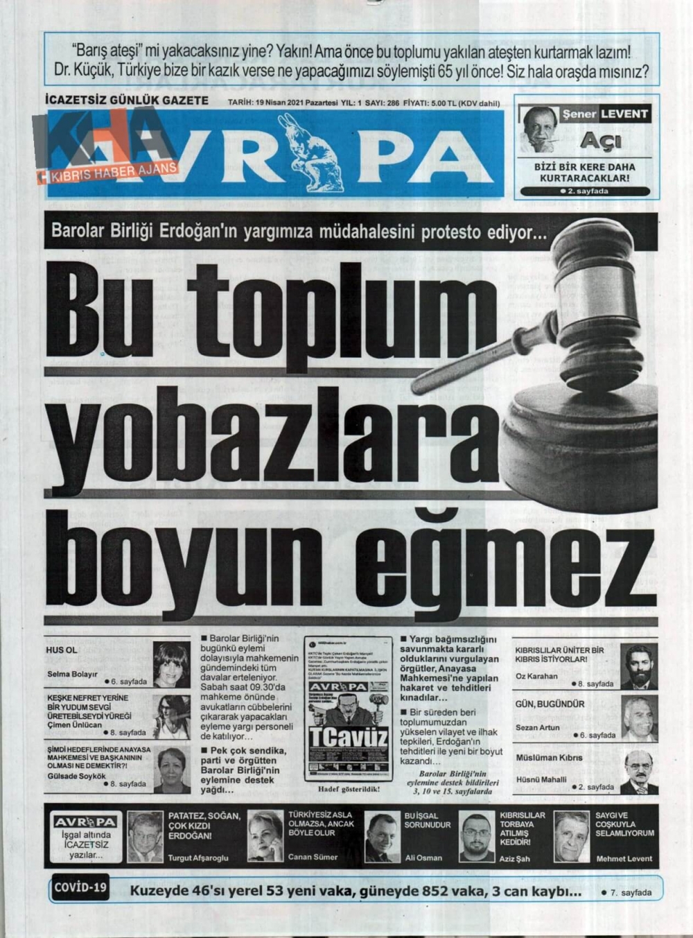 KKTC'de Gazeteler Bugün Ne Manşet Attı? (19 Nisan 2021)