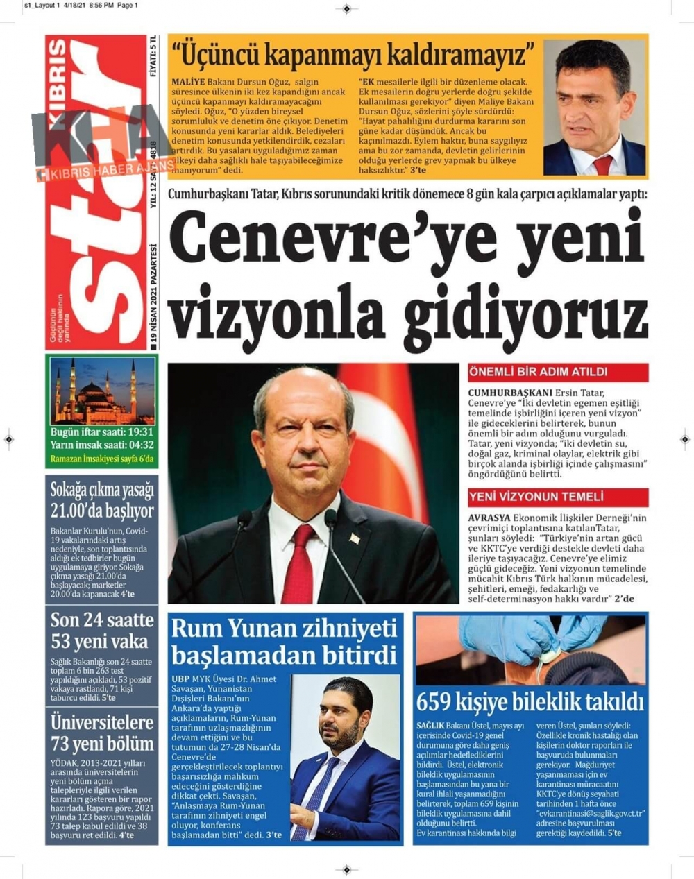 KKTC'de Gazeteler Bugün Ne Manşet Attı? (19 Nisan 2021)