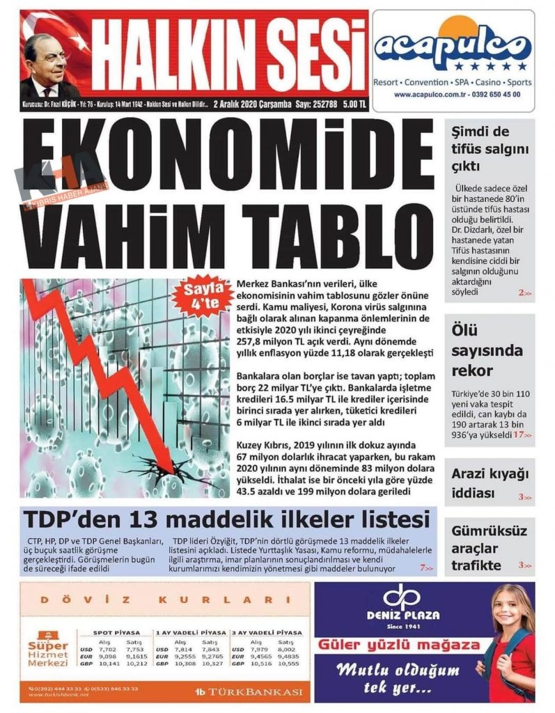 KKTC'de Gazeteler Bugün Ne Manşet Attı? ( 2 Aralık 2020 Çarşamba )