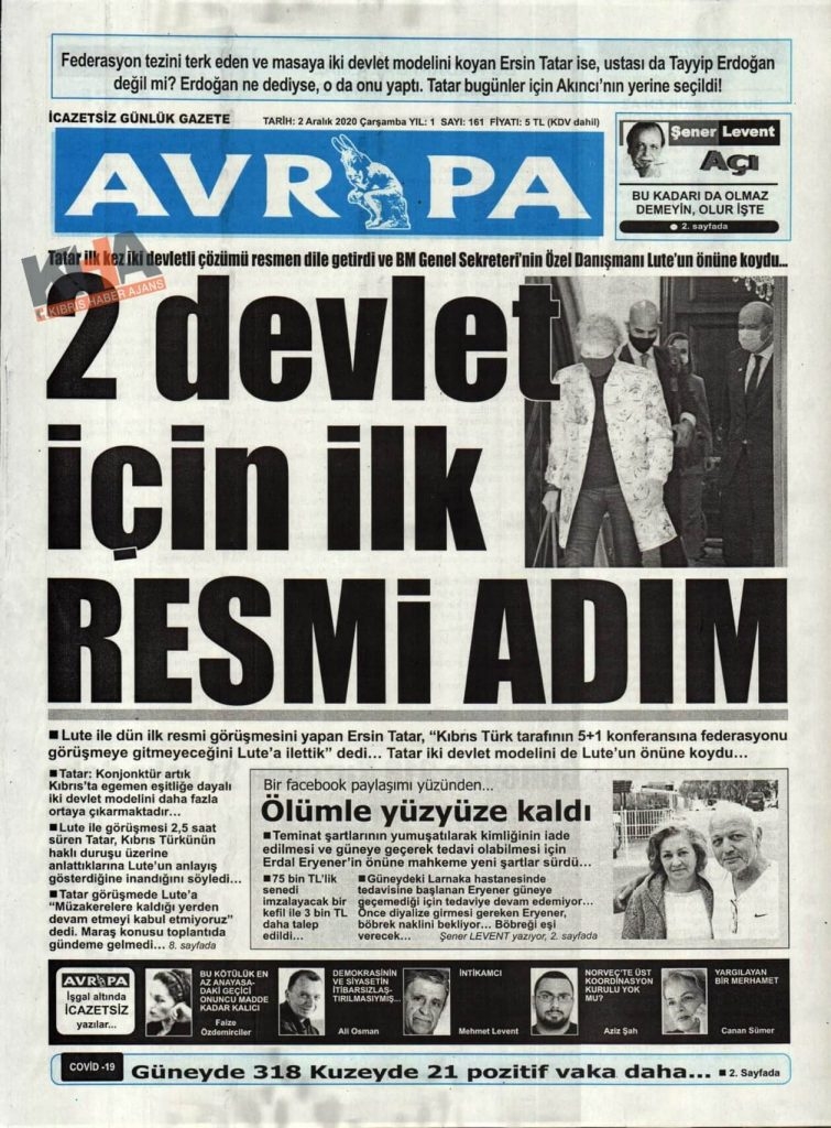 KKTC'de Gazeteler Bugün Ne Manşet Attı? ( 2 Aralık 2020 Çarşamba )