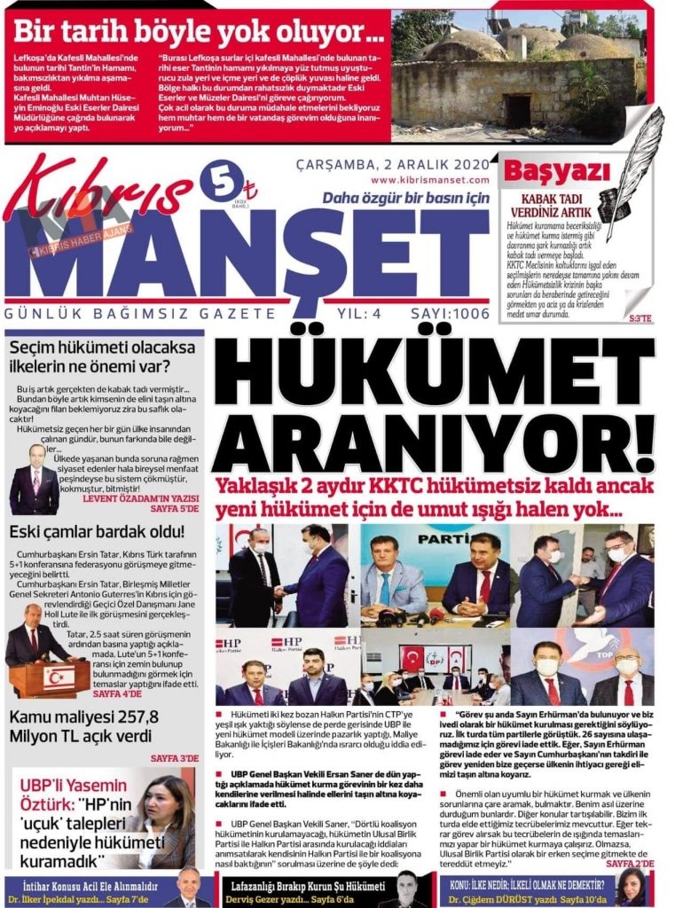 KKTC'de Gazeteler Bugün Ne Manşet Attı? ( 2 Aralık 2020 Çarşamba )