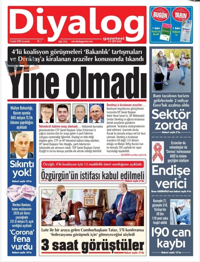 KKTC'de Gazeteler Bugün Ne Manşet Attı? ( 2 Aralık 2020 Çarşamba )