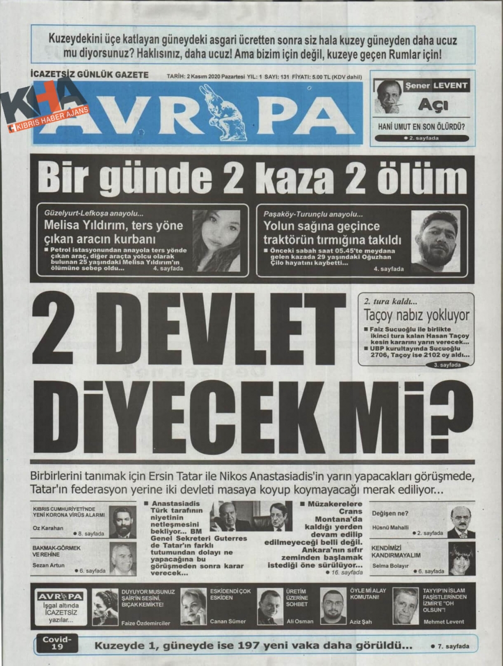 KKTC'de Gazeteler bugün ne manşet attı? 2 Kasım 2020 Pazartesi