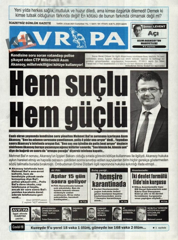KKTC'de Gazeteler Bugün Ne Manşet Attı? (2 Ocak 2020 Cumartesi)