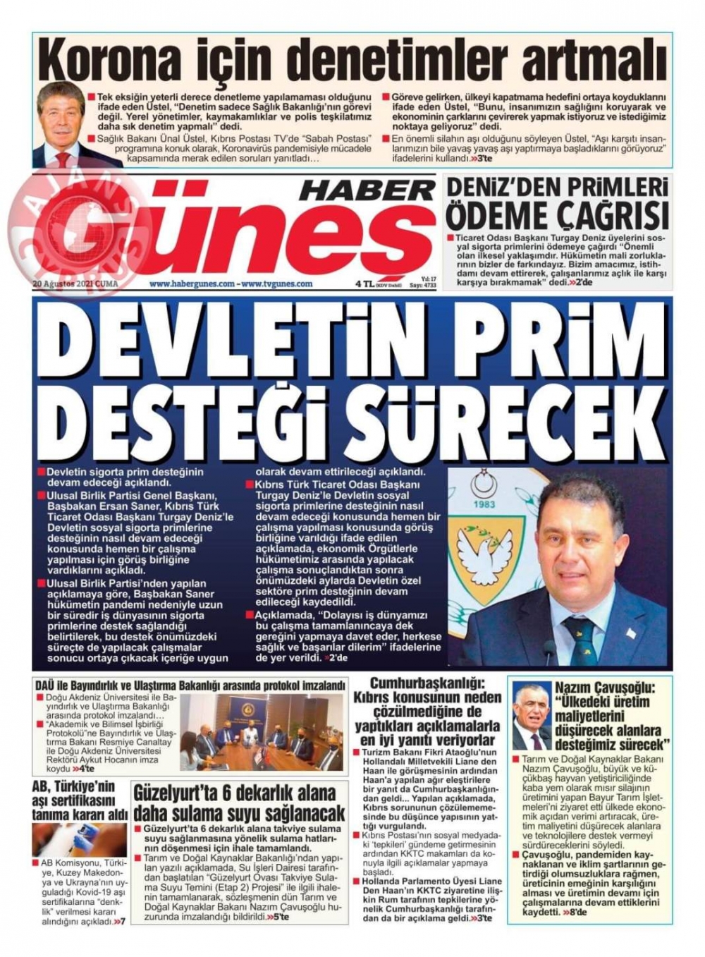 KKTC'de Gazeteler Bugün Ne Manşet Attı? (20 Ağustos 2021)