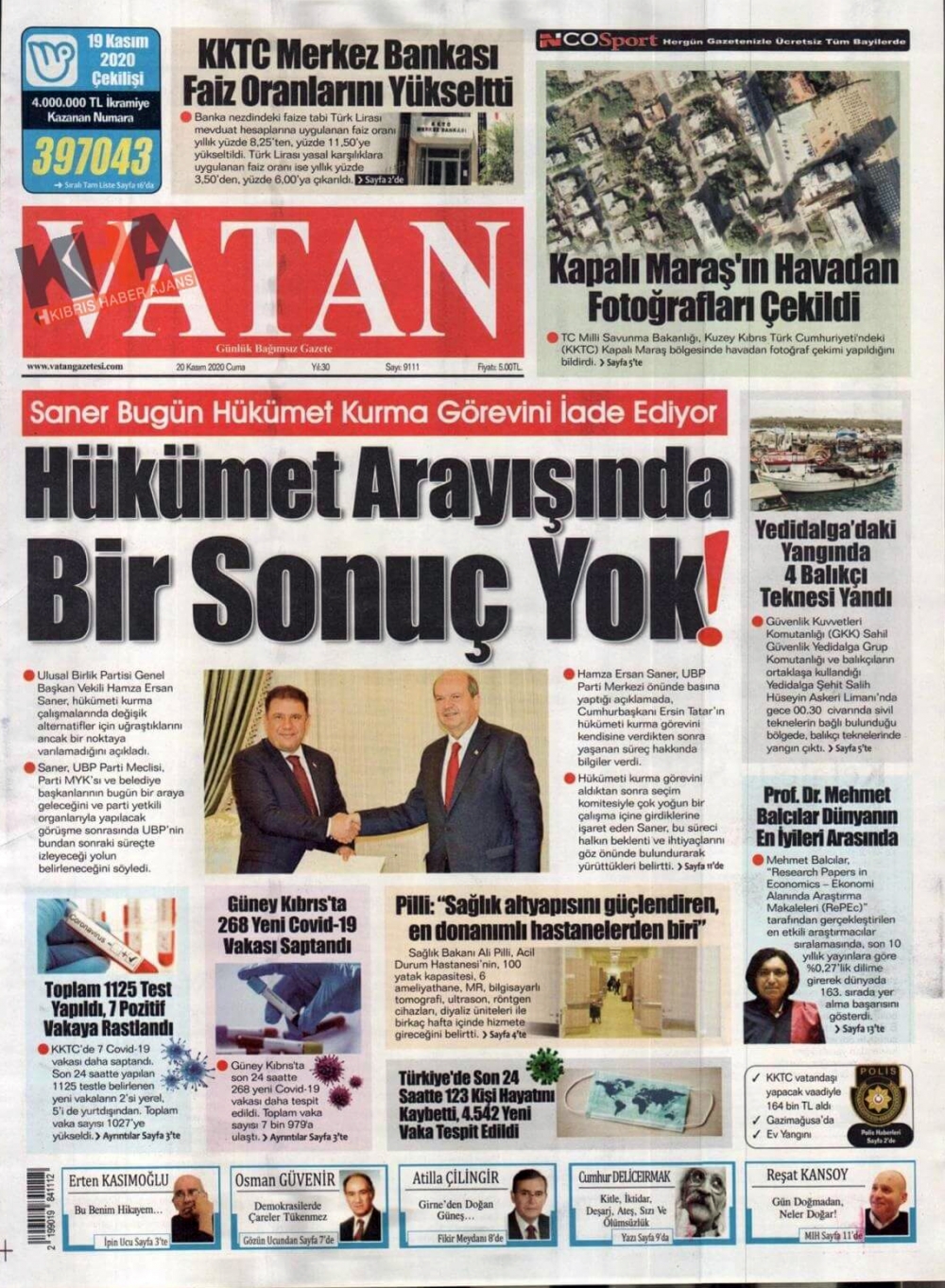 KKTC'de Gazeteler Bugün Ne Manşet Attı? (20 Kasım 2020 Cuma)