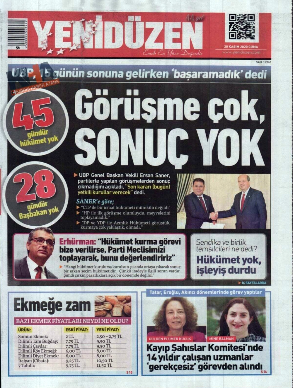 KKTC'de Gazeteler Bugün Ne Manşet Attı? (20 Kasım 2020 Cuma)