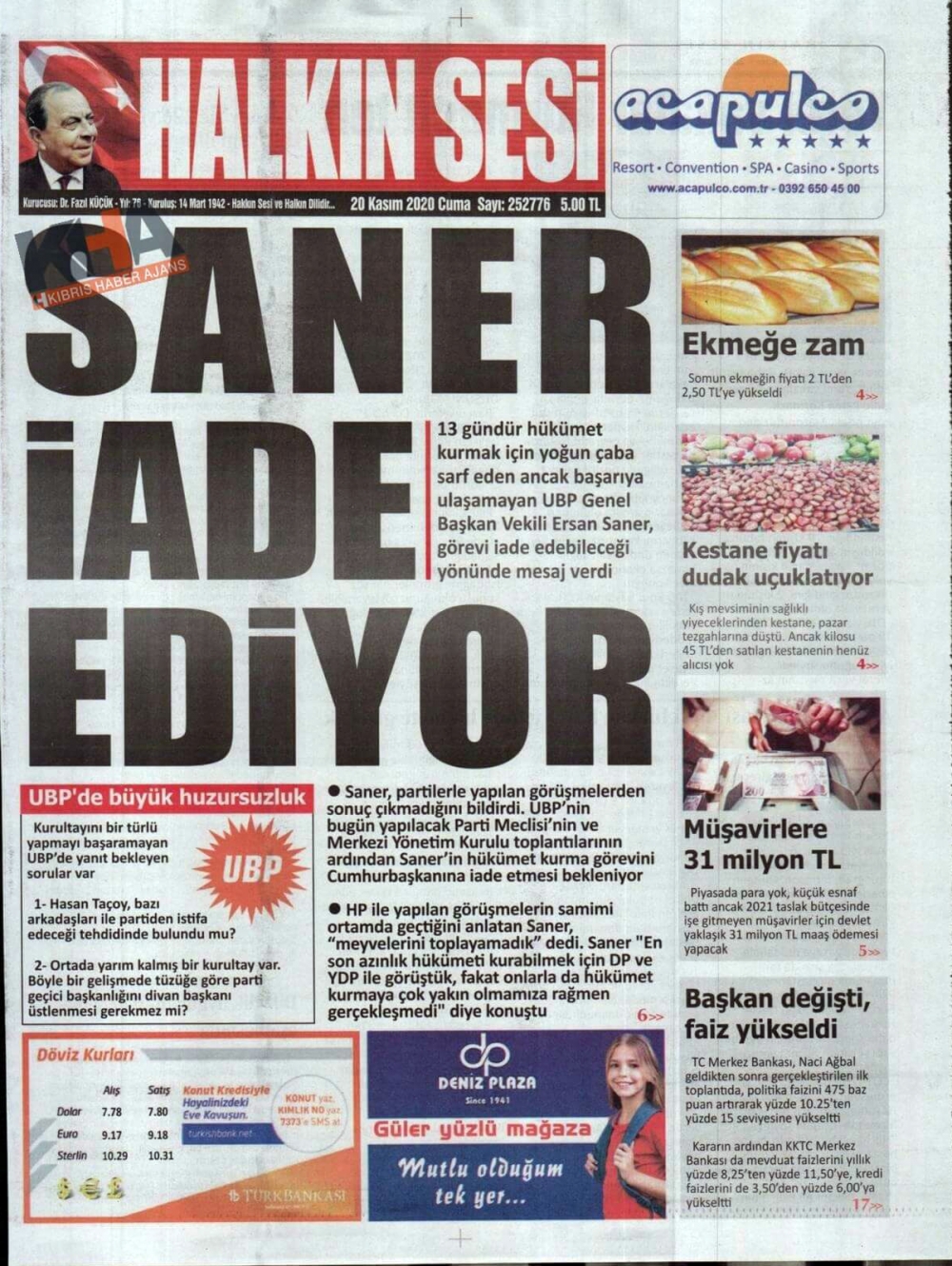KKTC'de Gazeteler Bugün Ne Manşet Attı? (20 Kasım 2020 Cuma)