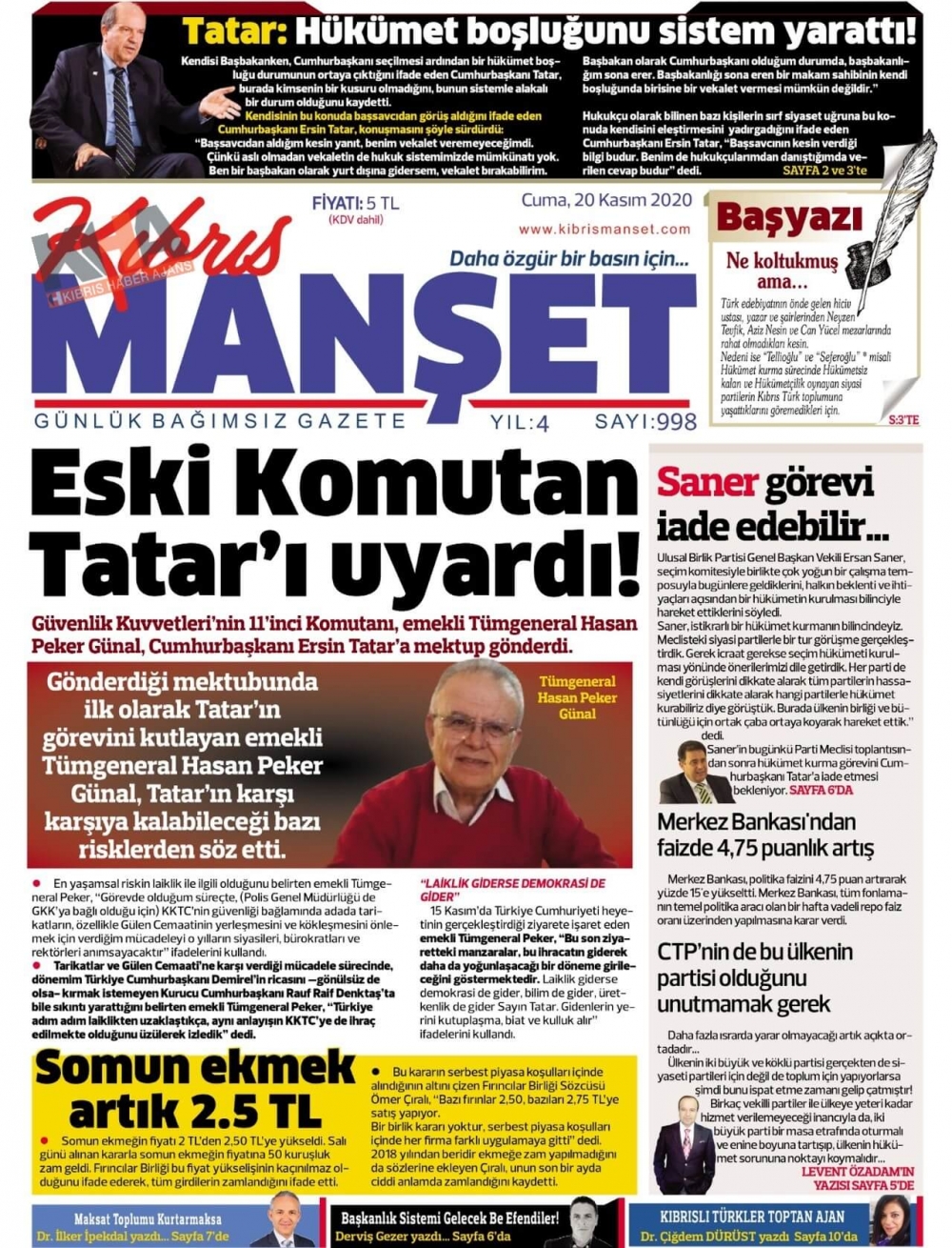 KKTC'de Gazeteler Bugün Ne Manşet Attı? (20 Kasım 2020 Cuma)