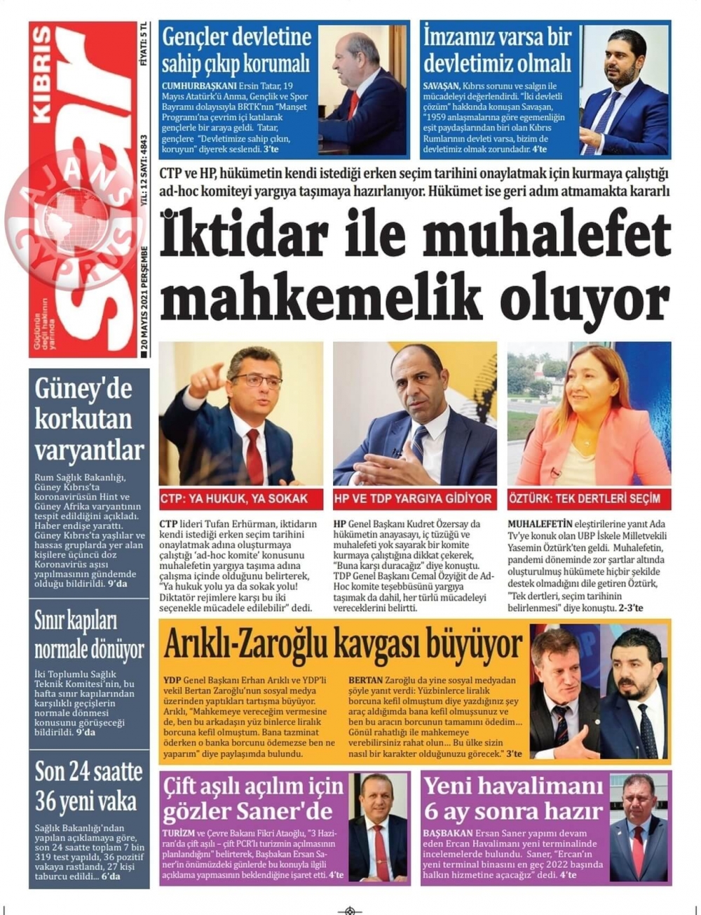 KKTC'de Gazeteler Bugün Ne Manşet Attı? (20 Mayıs 2021)