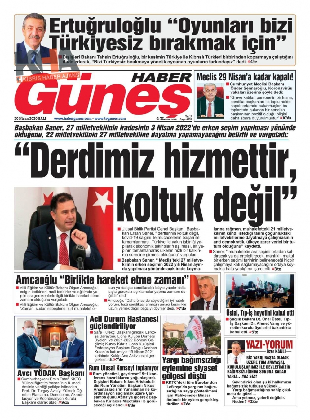KKTC'de Gazeteler Bugün Ne Manşet Attı? (20 Nisan 2021)