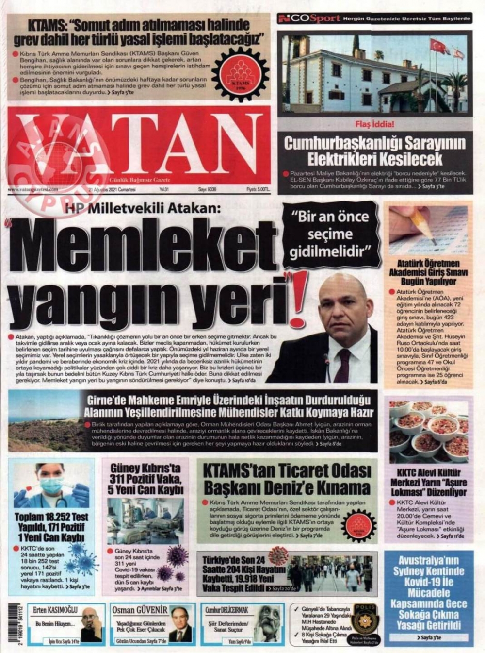 KKTC'de Gazeteler Bugün Ne Manşet Attı? (21 Ağustos 2021)