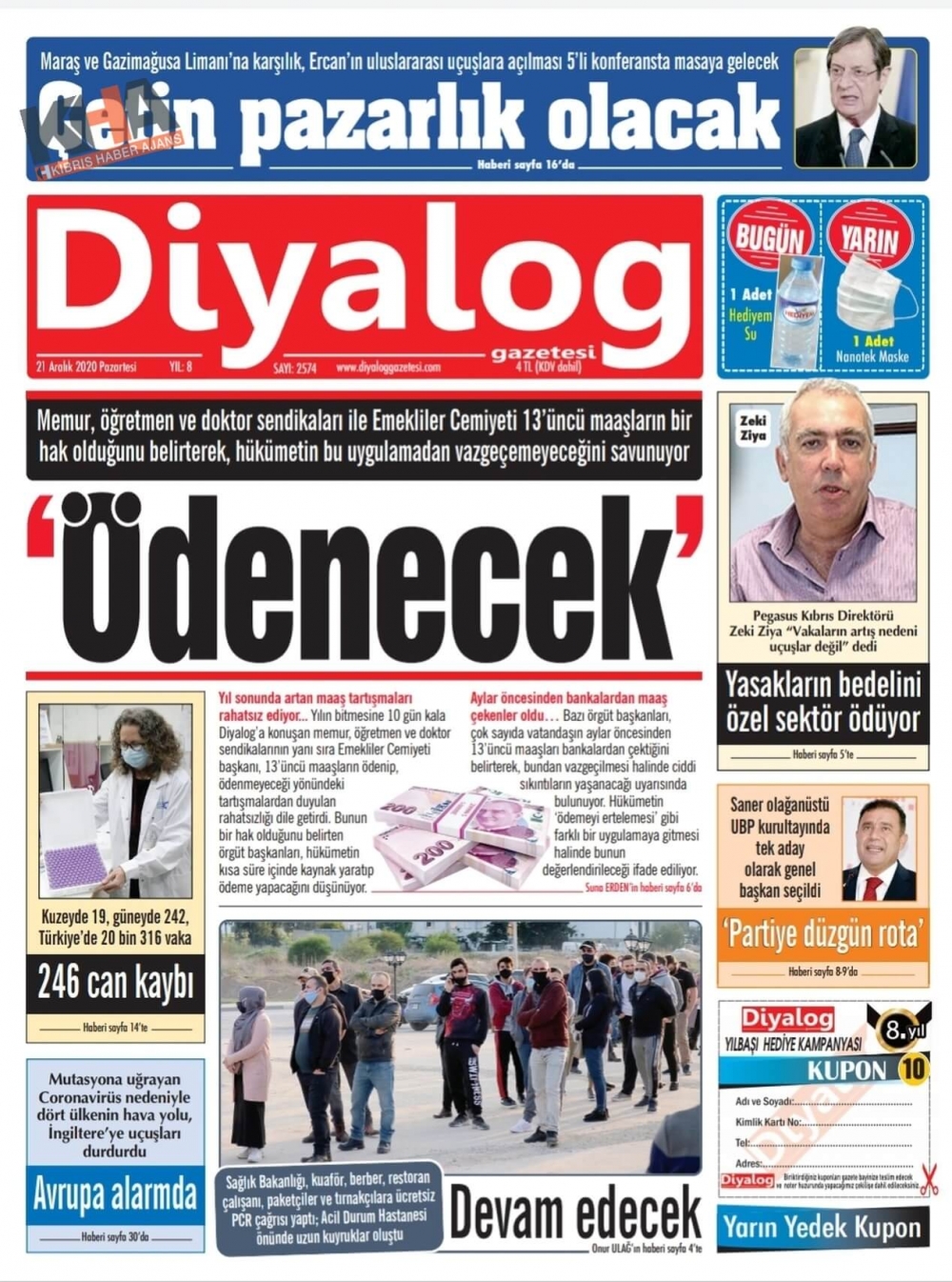 KKTC'de Gazeteler Bugün Ne Manşet Attı? (21 Aralık 2020 Pazartesi )