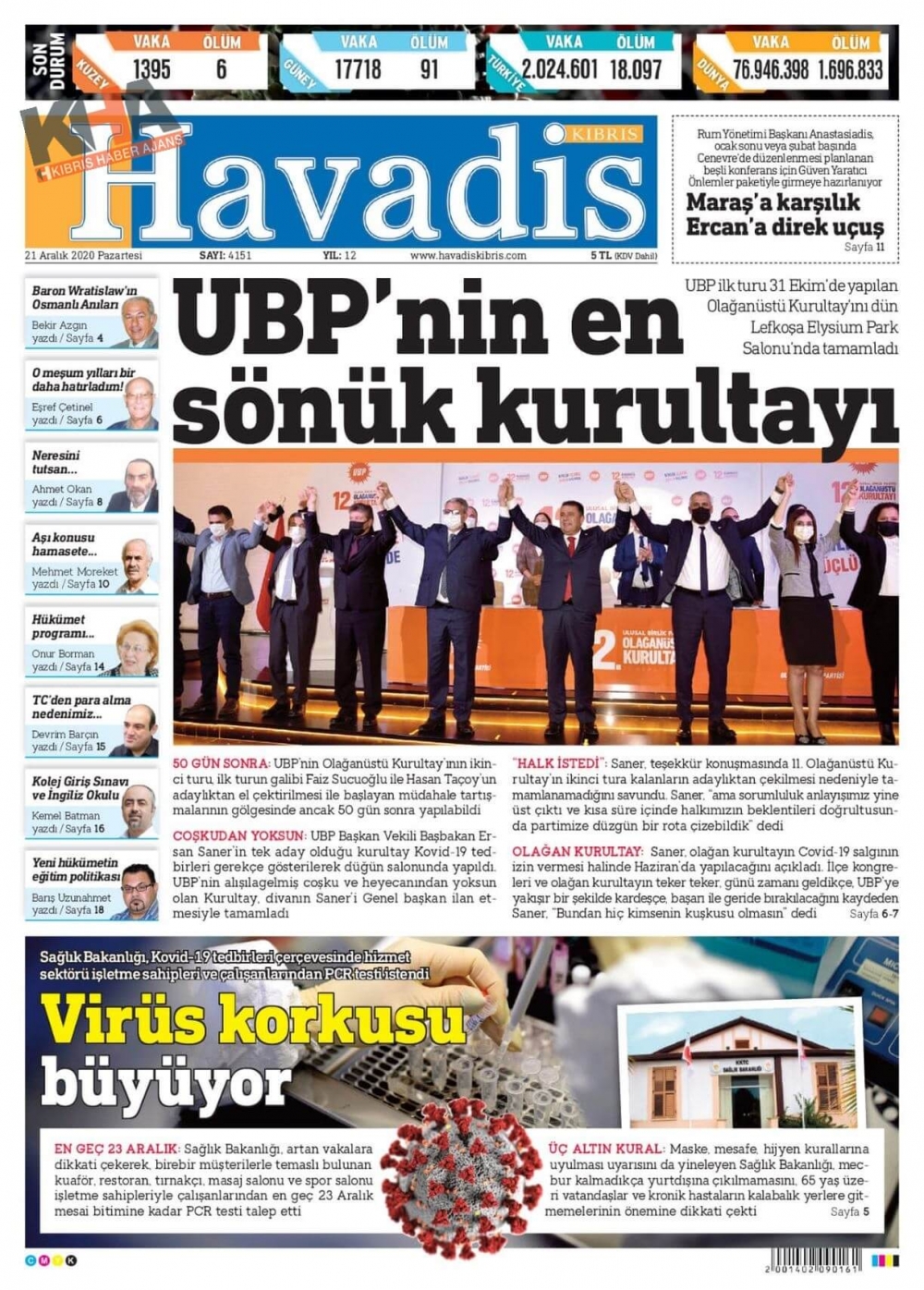 KKTC'de Gazeteler Bugün Ne Manşet Attı? (21 Aralık 2020 Pazartesi )