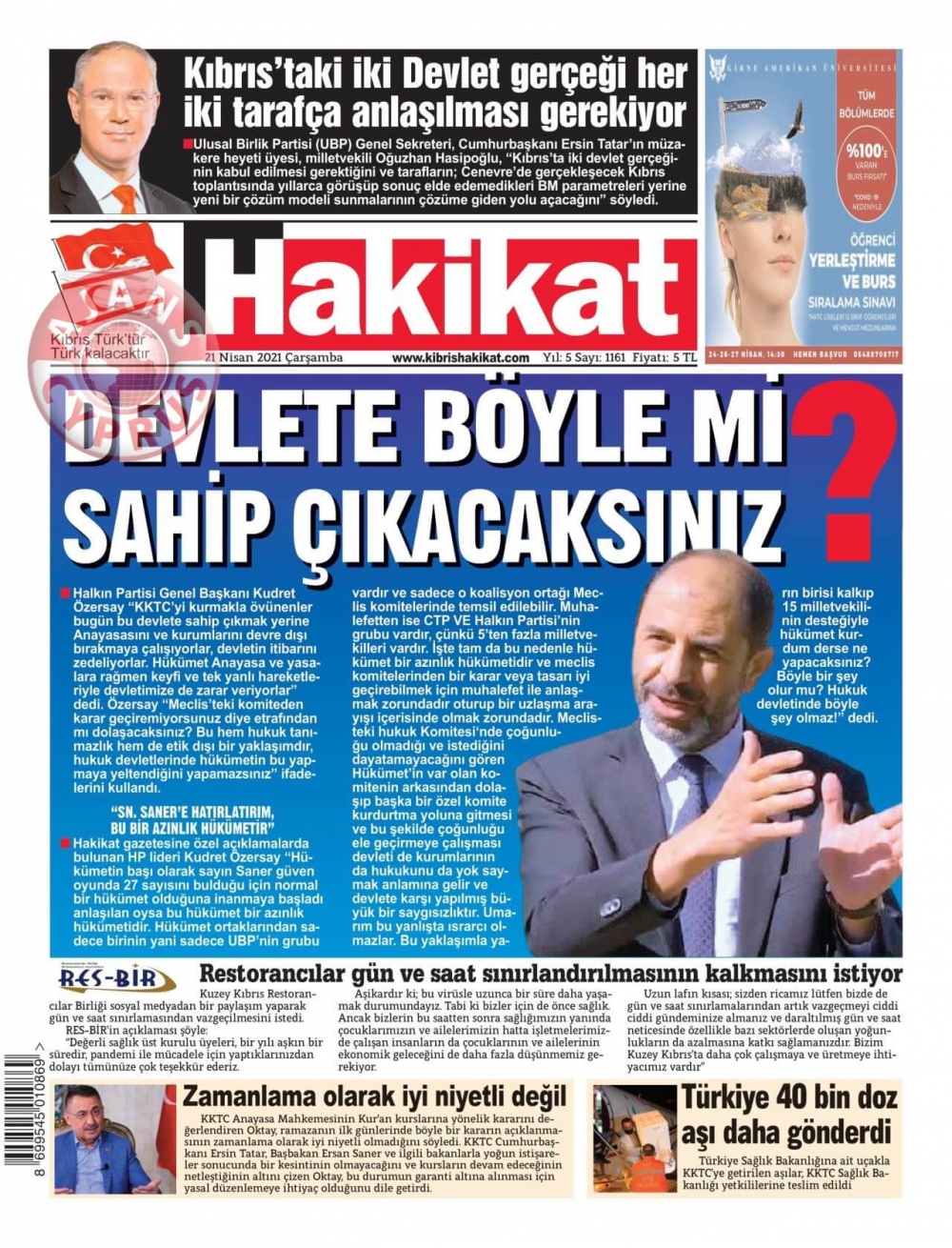 KKTC'de Gazeteler Bugün Ne Manşet Attı? (21 Nisan 2021)