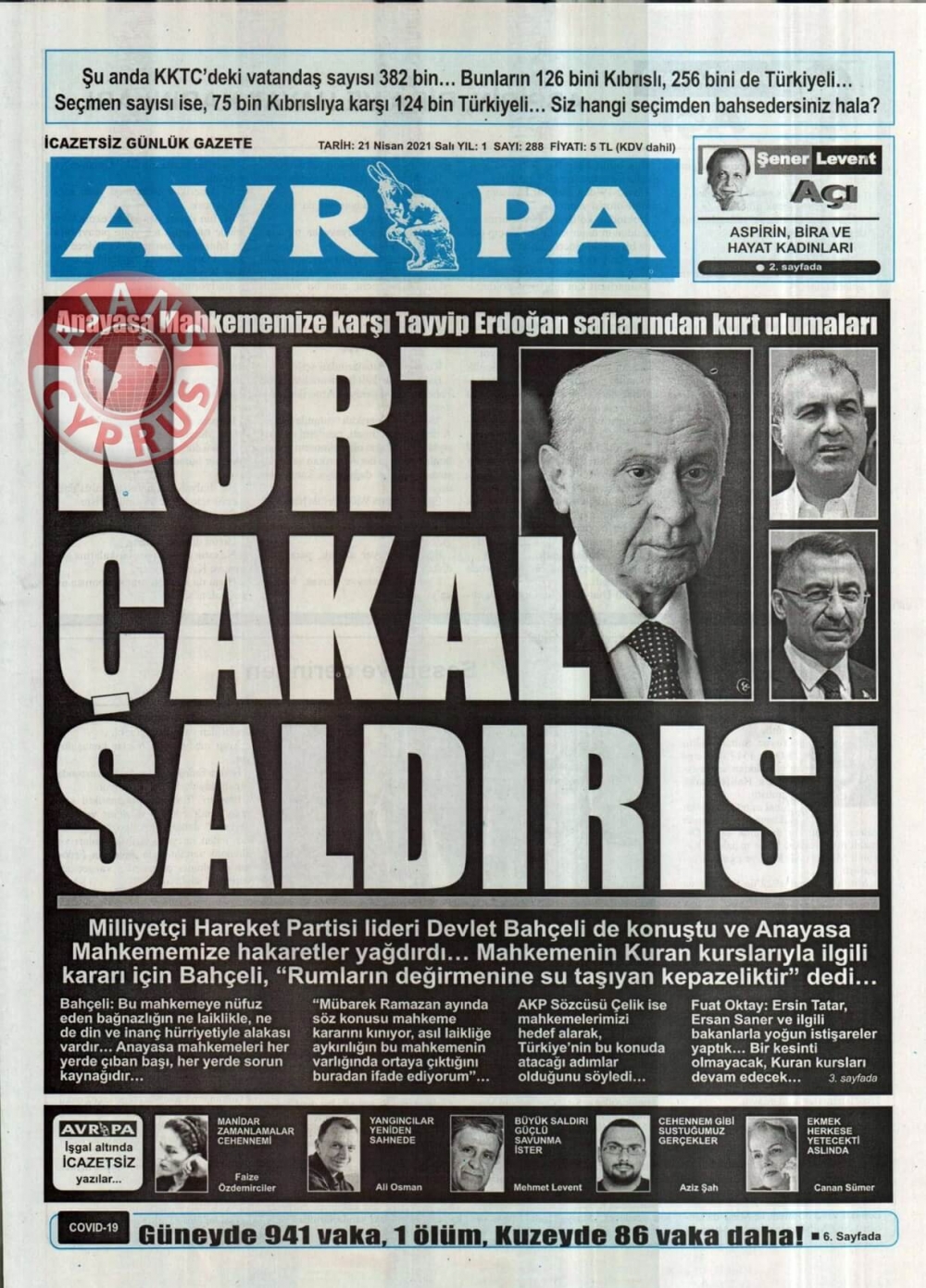 KKTC'de Gazeteler Bugün Ne Manşet Attı? (21 Nisan 2021)