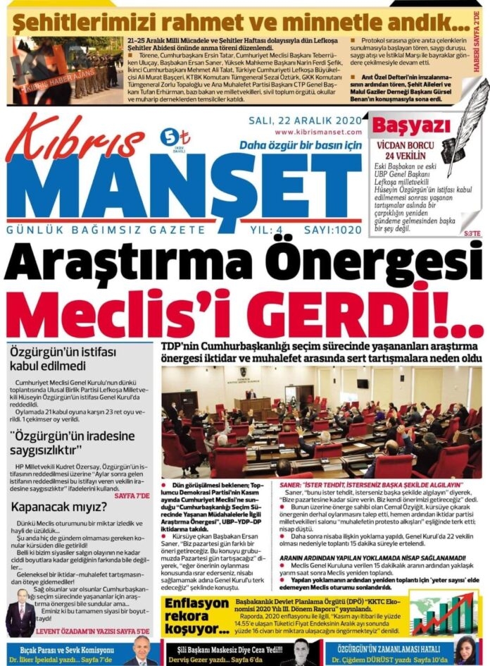 KKTC'de Gazeteler Bugün Ne Manşet Attı? ( 22 Aralık 2020 Salı )