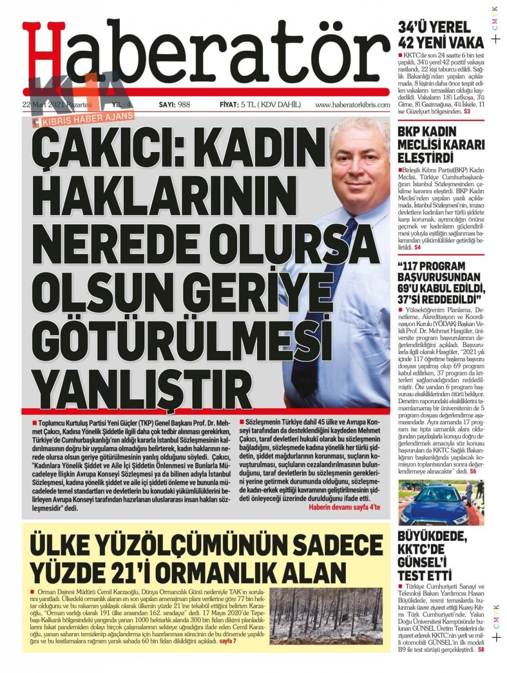 KKTC'de Gazeteler Bugün Ne Manşet Attı? (22 Mart 2021)