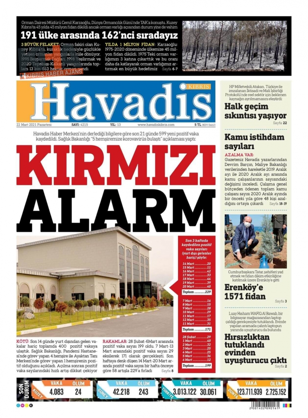 KKTC'de Gazeteler Bugün Ne Manşet Attı? (22 Mart 2021)