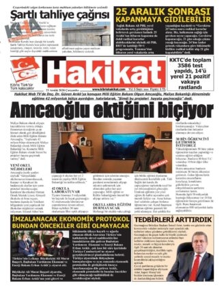 KKTC'de Gazeteler Bugün Ne Manşet Attı? ( 23 Aralık 2020 Çarşamba )