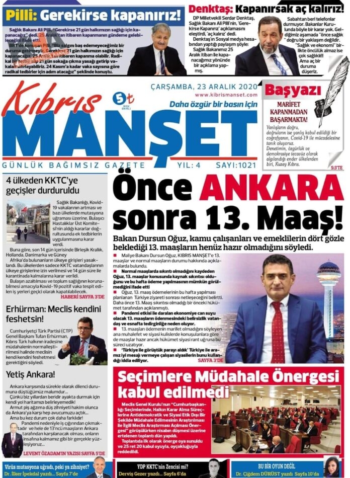KKTC'de Gazeteler Bugün Ne Manşet Attı? ( 23 Aralık 2020 Çarşamba )