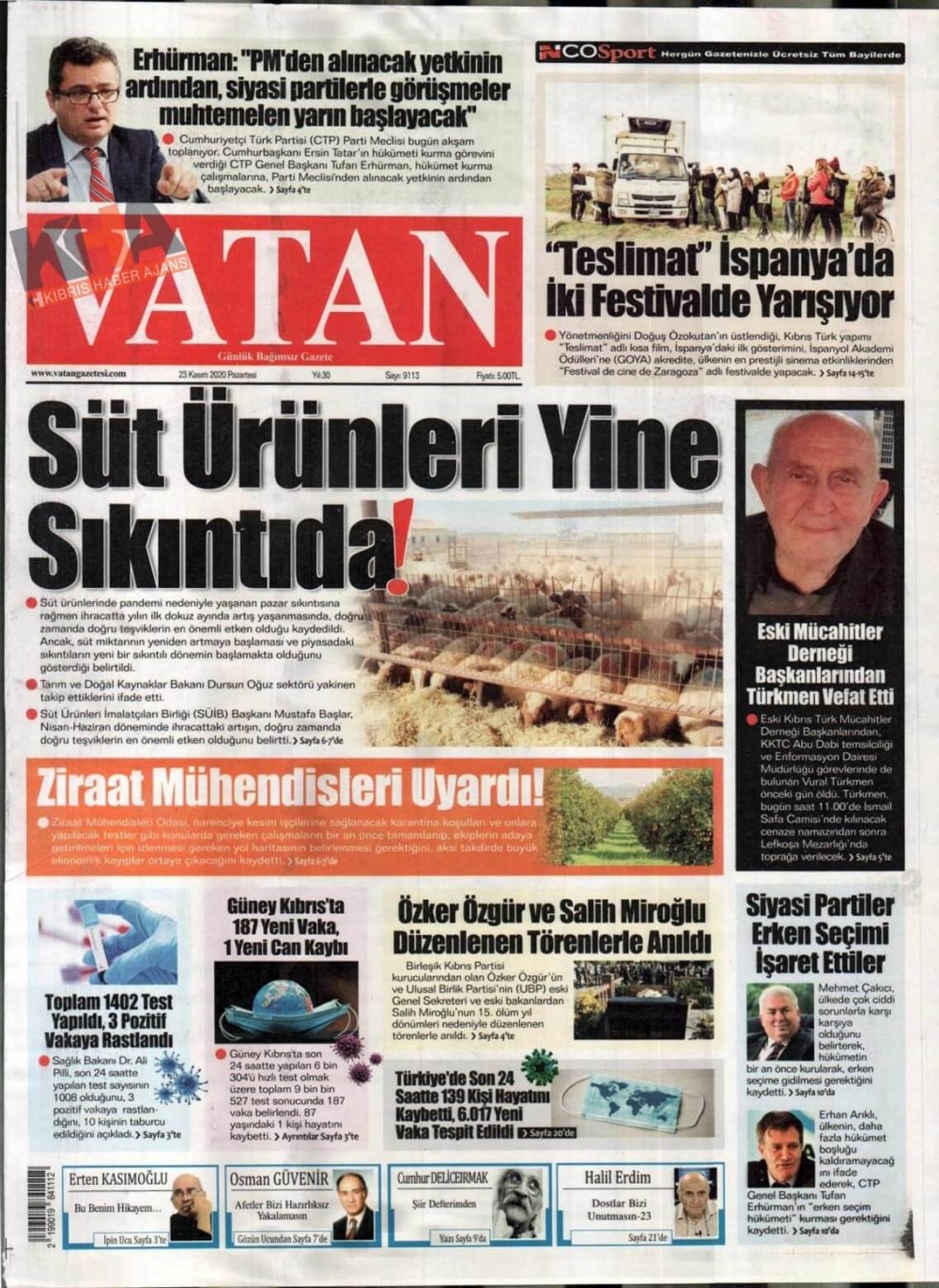 KKTC'de Gazeteler Bugün Ne Manşet Attı? (23 Kasım 2020 Pazartesi)
