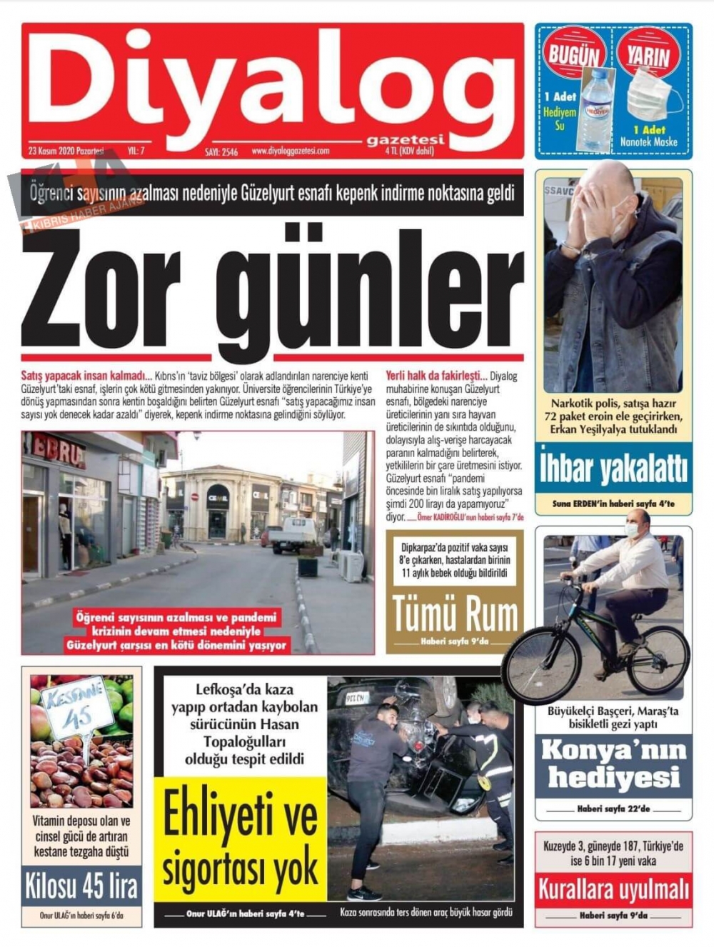 KKTC'de Gazeteler Bugün Ne Manşet Attı? (23 Kasım 2020 Pazartesi)