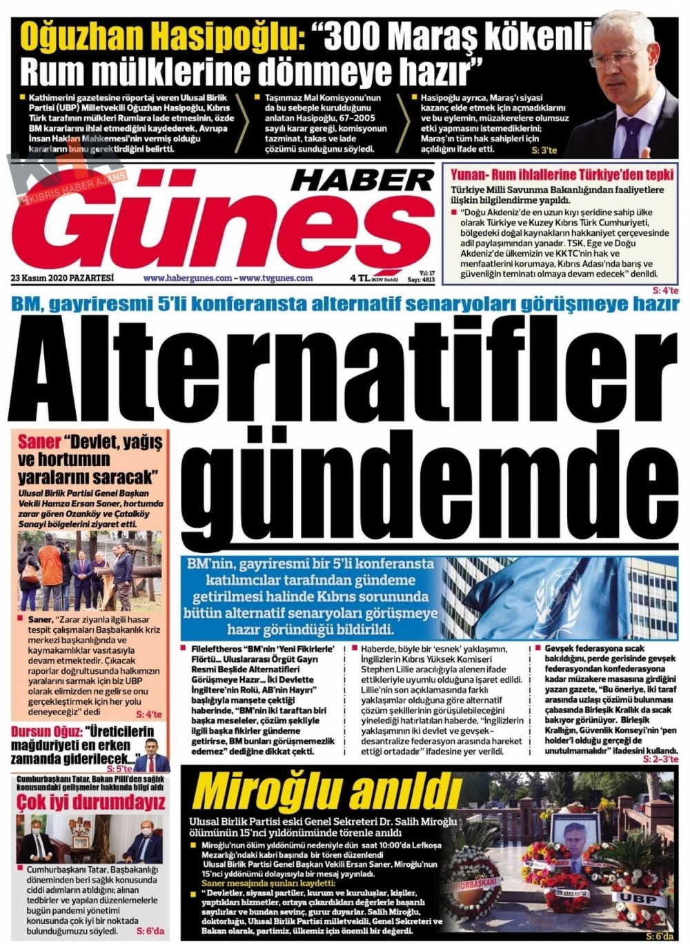 KKTC'de Gazeteler Bugün Ne Manşet Attı? (23 Kasım 2020 Pazartesi)